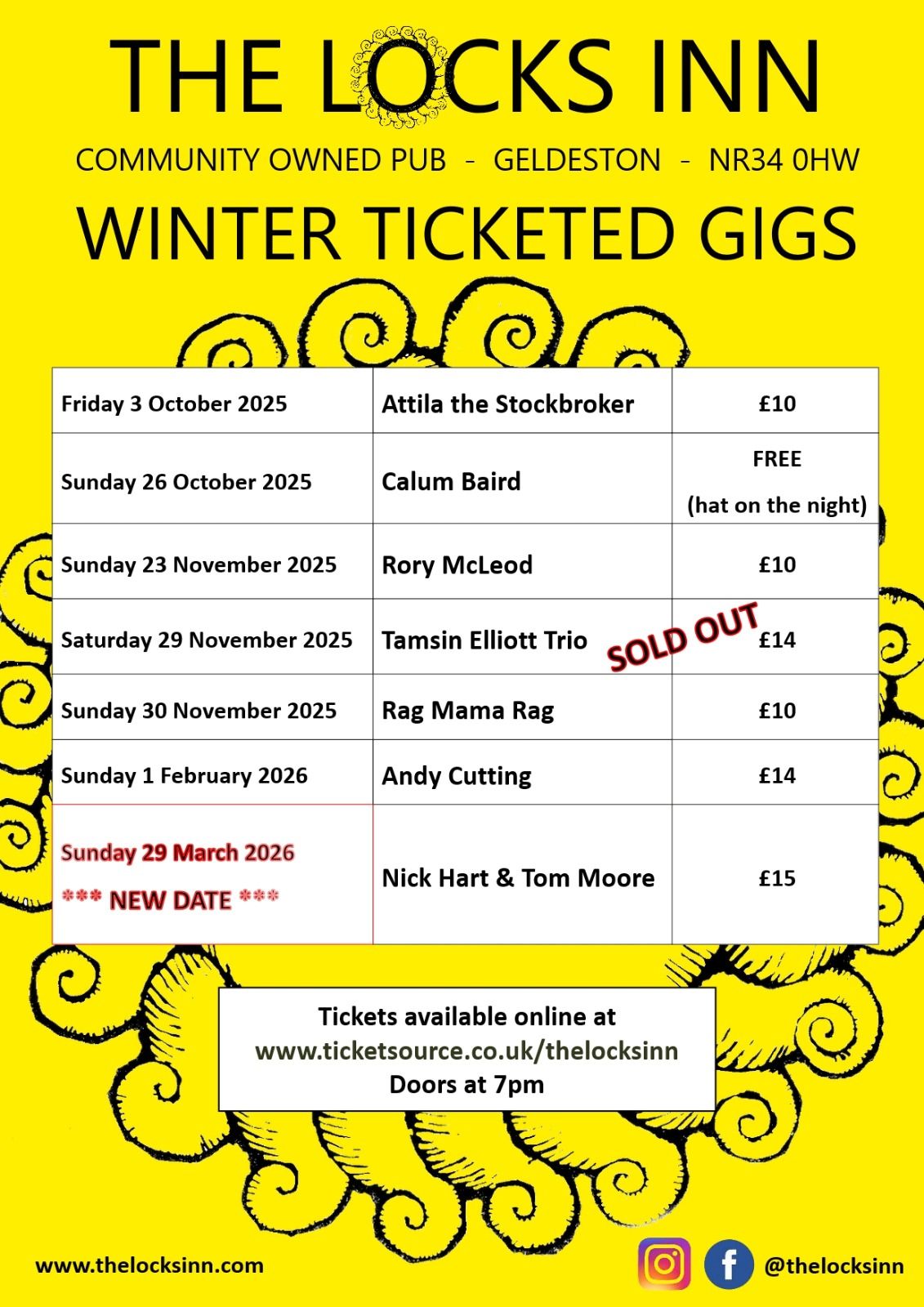 Sun 26th Callum Baird ticketed event 7pm